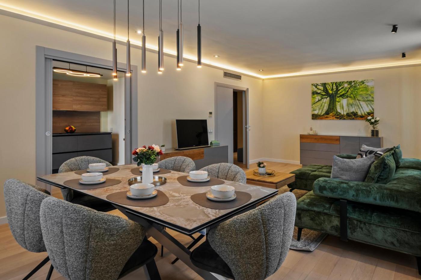 Two-Bedroom Apartment with City View. Guests will have a special experience as this apartment provides a spa bath. This spacious apartment is comprised of 1 living room, 2 separate bedrooms and 2 bathrooms with a walk-in shower and free toiletries. Guests can make meals in the kitchen that is fitted with a stovetop, a refrigerator, a dishwasher and kitchenware. The air-conditioned apartment offers a flat-screen TV with streaming services, a washing machine, soundproof walls, a tea and coffee maker as well as lake views. The unit offers 2 beds.