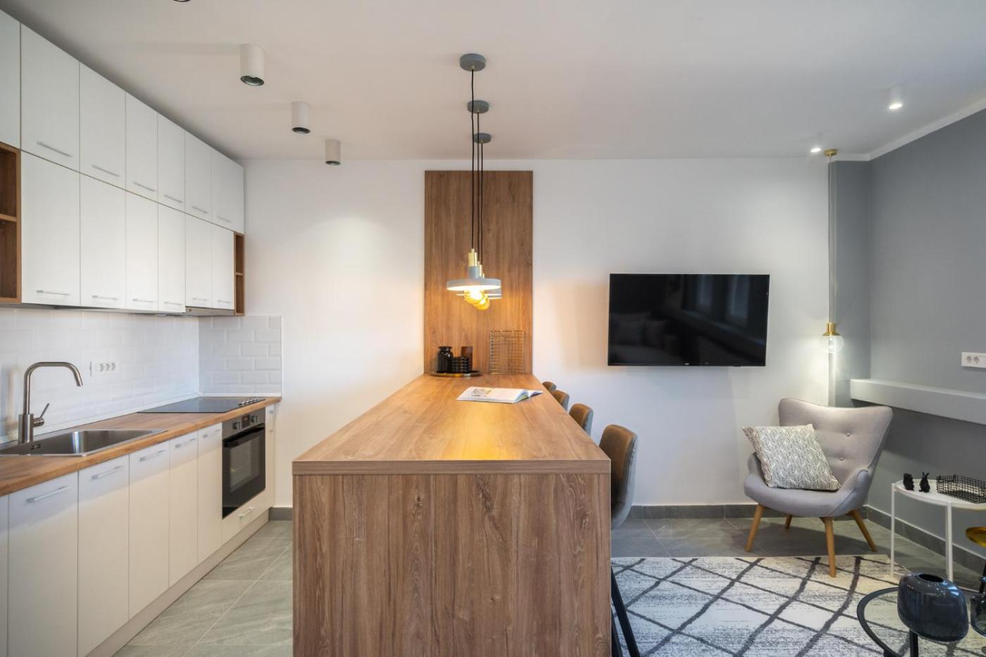 Two-Bedroom Apartment. The apartments kitchen, which has a refrigerator, is available for cooking and storing food. The spacious apartment offers air conditioning, a washing machine, a private entrance, soundproof walls and a flat-screen TV. The unit has 3 beds.