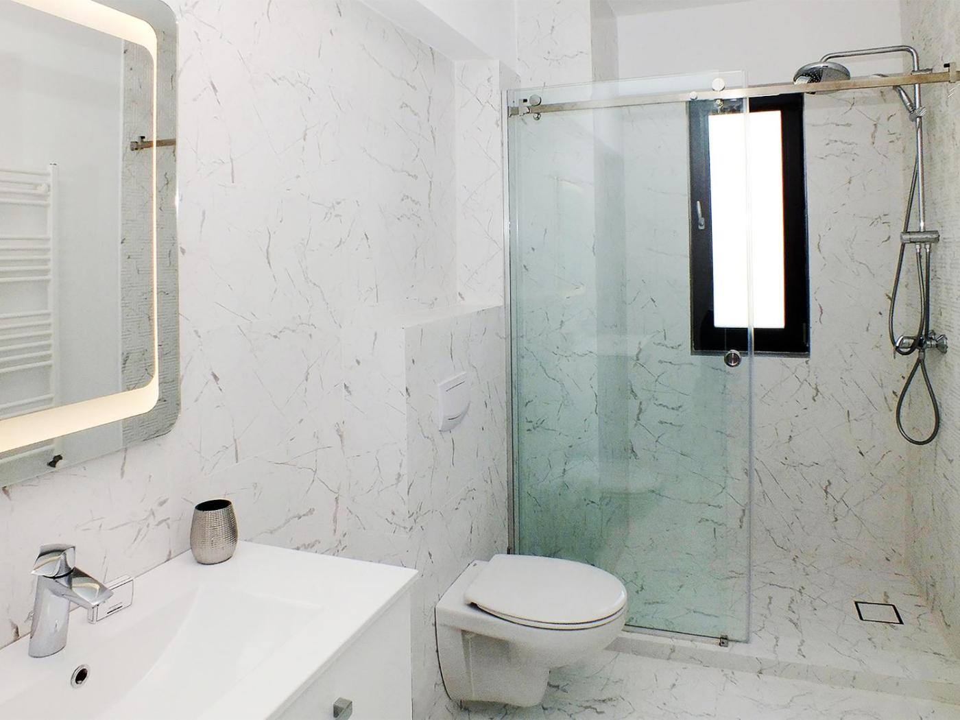 Two-Bedroom Apartment. This spacious apartment is comprised of 1 living room, 2 separate bedrooms and 2 bathrooms with a shower and bathrobes. In the well-equipped kitchen, guests will find a stovetop, a refrigerator, kitchenware and an oven. The air-conditioned apartment offers a flat-screen TV, a washing machine, a tea and coffee maker, a dining area as well as sea views. The unit offers 3 beds.